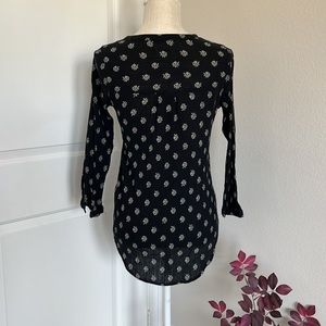 Light cotton v-neck tunic with 3/4 sleeves. Back is about 2.5 inches longer than front.