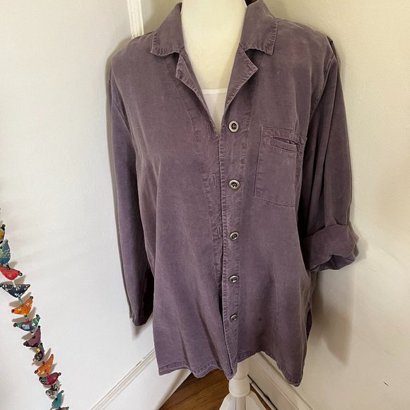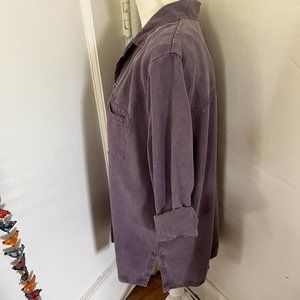 Tunic, violet color, tencel fabric. Underarm seam-to-seam: 22"; hips: 22"; length: 30".