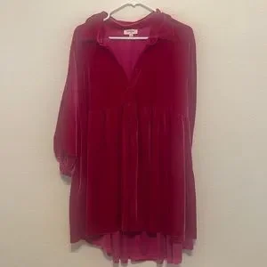 Euc. Worn once. Faux velvet. Gorgeous pink color. Balloon type quarter sleeves. Button down. Smoke free. No trades.