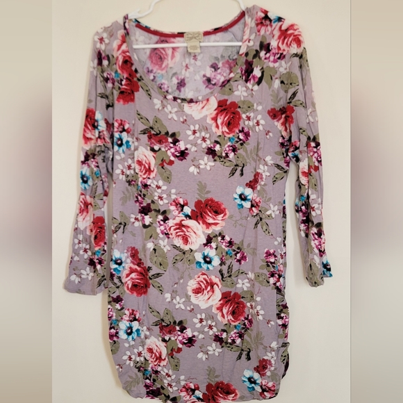 Extra large gray tunic floral, long sleeve shirt.