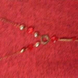 Pullover scoop neck tunic. Shark bite hem . Long sleeve. Detachable necklace at neckline. Colors are red and black heather pattern. 21" across chest. 31" from shoulder to hem.