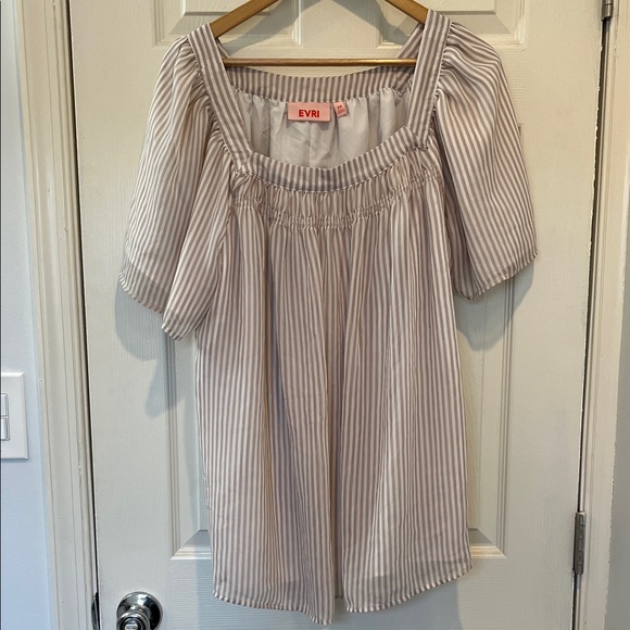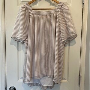 Boatneck with flowy sleeves. Really pretty mauvr and white stripe