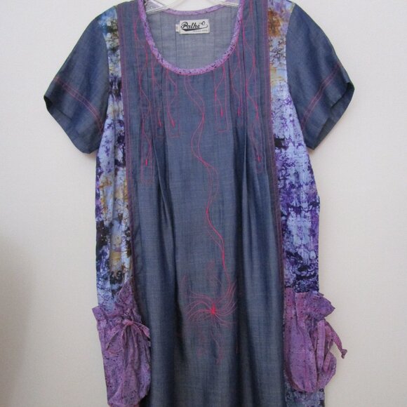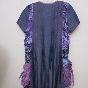 Lightweight cotton Artisian patchwork dress in traditional African print fabrics and denim colored woven.