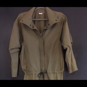 Olive long sleeve 100% cotton tunic dress with drawstring waist side slit with snaps. Snap front and collar. Matching pants with snap frt. sides. Great outfit. Excellent condition. Drawstring on waist and blouse over top. Wear with matching