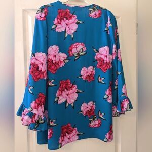 Tunic Floral Top Ladies Teal Pink Red Flowy Size Small