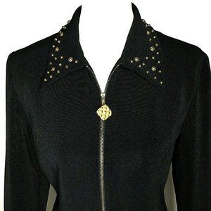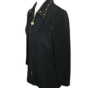 Tunic Front Zip Blazer With Gold Studded Collar Size 10 Black Simply Tops