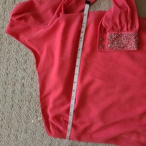 Cold shoulder one shoulder lined tunic. Excellent condition. Size S. Coral color. Sold in bundle. Belt not included.