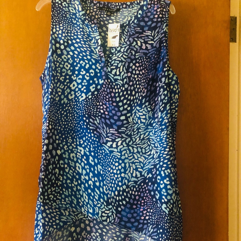 Lovely multi colored tunic tank. Pairs nicely with white, teal, or navy.