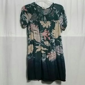 Long short sleeve and great for spring and summer. Deep green color with floral print.