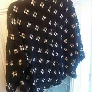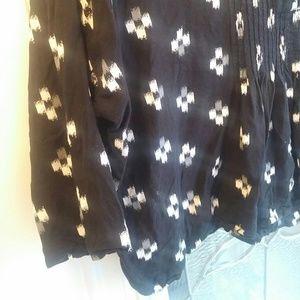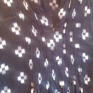 Black tunic top with grey and white detail. 3/4 length sleeves. From Old Navy, womens size M.