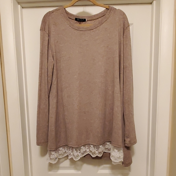 Long sleeve flowy tunic top with lace bottom(front only). Tan/brown in color. Excellent condition