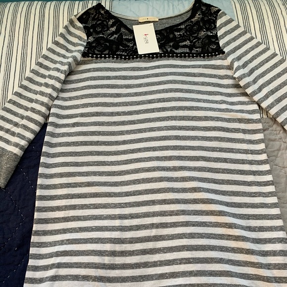Cute tunic top with black lace. NWT. Could possible be worn as a maternity top.