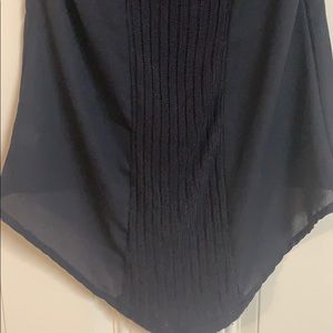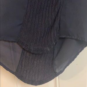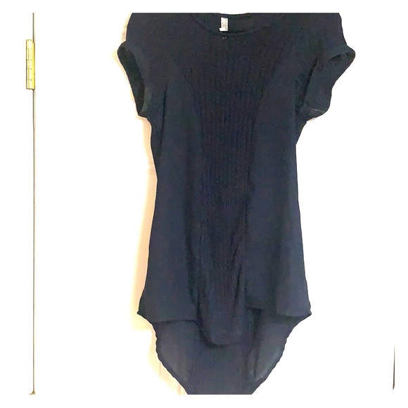 Women’s high low tunic top. It’s knit through the middle (front and back) and on the sleeves. It’s navy blue and like new. Smoke free home. I can post more pics if needed. Motivated seller :)