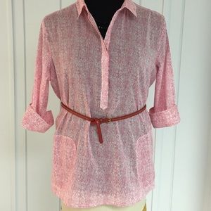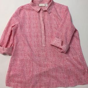 Casual any day Tunic very light 100cotton half way buttoned 3/4sleeves funny front pockets side vents. Chico's size 2 is M or 10.