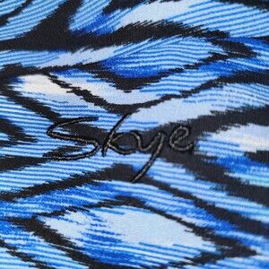 Skye Womens Tunic Top Size Large Button Up Collar Long Length Roll Tab Long Sleeves Skye Logo on right bottom side seam. Machine Wash Approximate Measurements: Pit to Pit: 22" Length: Tapered hem from 34.5' to 35.5"Elevate your casual wardrobe with this stylish Skye Women's Tunic Top. Designed in a size large, this tunic features a vibrant geometric print in shades of blue, creating a striking and contemporary look. The button-up front and classic collar add a touch of sophistication, while the long sleeves with roll-tab functionality provide versatile styling options.