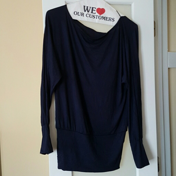Navy and pale pink tunic type shirt with a more fitted bottom band. Brand new