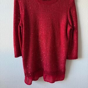 Tunic Red sparkly sequin sweater with sheer layer hem