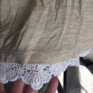 Worn once and washed according to directions. I love it but it doesn't fit. Lightweight and soft fabric. A great neutral color to wear with about anything. A light beige and the lace on the bottom is white.