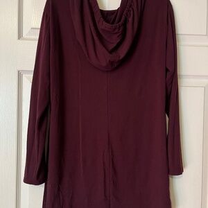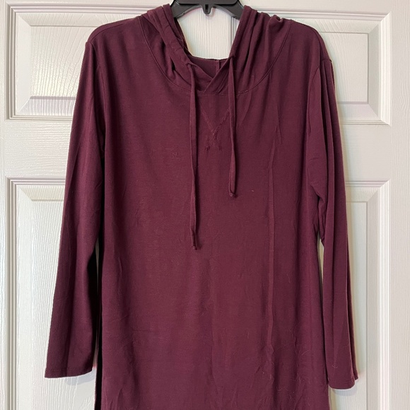 Burgundy Tunic top with hood and side slits