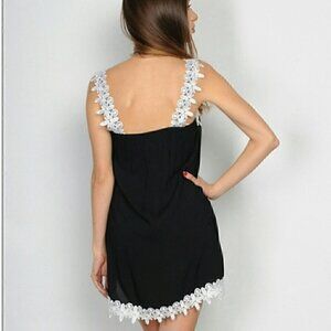 Black tunic top/ mini dress with lace trim. Can be worn with boots and a denim jacket or as a tunic top with a warm pair of leggings