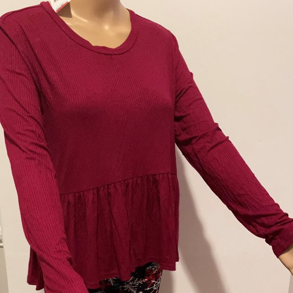 Hooked Up by IOT Juniors Babydoll Top Wine Size Medium