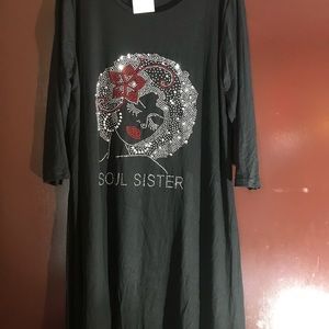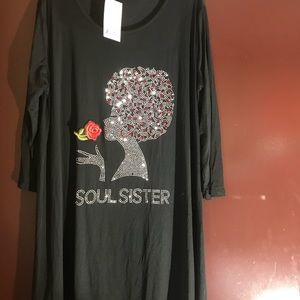 Black stretchy jersey type fabric one size and plus available with rhinestones