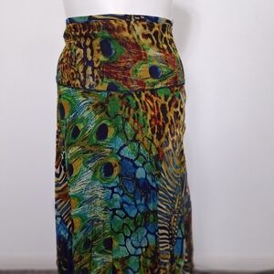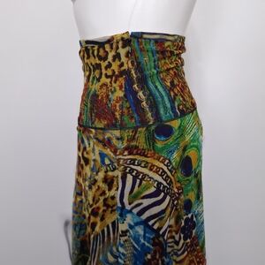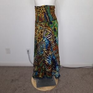 Tunique Multicolor Bohemian Animal Print Mobwife Frayed Hem Maxi Skirt Size L