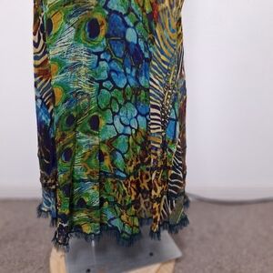 Tunique Multicolor Animal Print Frayed Hem Maxi Skirt Size L
