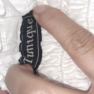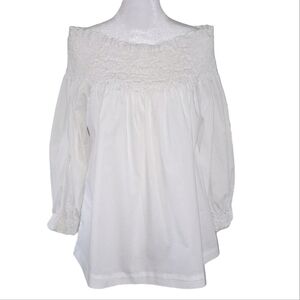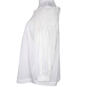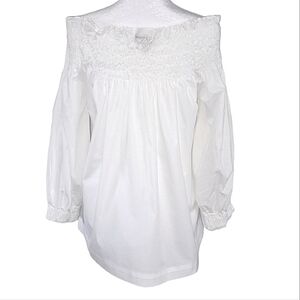 Tunique Women's White Blouse Smocked Neckline Size M/L