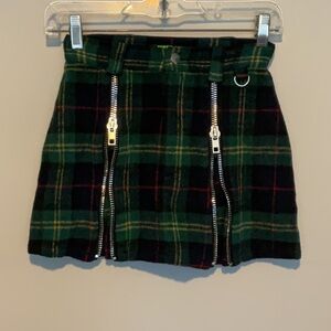 Tunnel Vision Weetzie green plaid mini skirt w/ zip pleats size XS