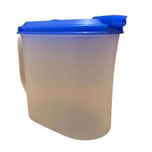 Tupperware 1 Quart semi sheer pitcher with blue flip top pouring lid 2189A-2.