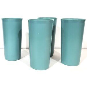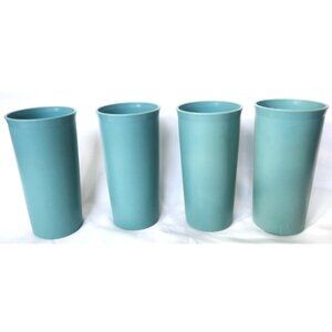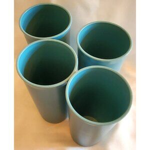 Tupperware #116 set of 4 TUMBLERS medium blue gray 9oz stacking cups glasses 5"h
