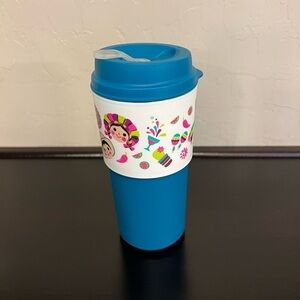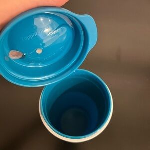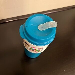 Tupperware 16oz plastic cup, mexico fiesta theme, teal blue, EUCsilicone stopper
