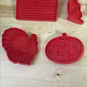 Tupperware 1970’s cookie cutter set. Includes - American flag, bunny, gingerbread man, piggy, turkey, pumpkin, Christmas tree and Santa.