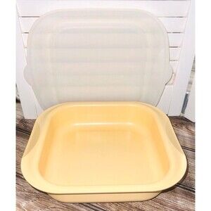 Tupperware 2 Qt Oven Works Dijon Gold Casserole 3657A-1 with Seal Cake Pan