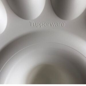 Excellent Condition ~ Display holds 12 Eggs or 24 deviled egg halves. Tiers fit snugly into the Tupperware round cake holder for storage and transport.