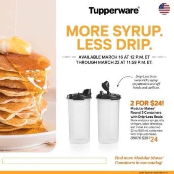 Tupperware Dripless Syrup Containers Set of 2
