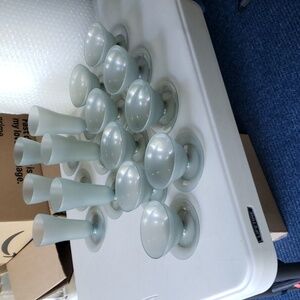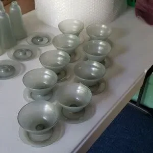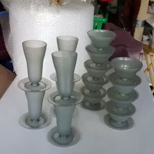 For jello pudding are ice cream or any other kind of desserts they are like new I think I used to maybe 3 times I had impact away there are an exhal condition There are 6 Ice cream ones and 9 jello are Dessert whatever they come apart their dishwasher safe but I never put them in a microwave I never really even put them in a dishwasher I think I used them maybe 4 times they are absolutely really nice they pop apart And they're nice and strong they're great for kids are even company whatever there's a lot of them I think there's a total of 30 pieces look at the pictures in video They're like a grayish color and they're by Tupperware 🍨🍇 They are for hot and cool so if you make a HOT dessert you can put it right in it