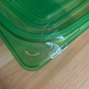 Selling lots (57 pieces) of plastic food storage/tupperware. It’s plastic and comes in different size and shapes. Some are thicker plastic than others. Mostly are clear, green, and black. Perfect for organizing your kitchen. Most of them were hardly used. Great condition. Only one of the top lid cracked a bit (see photo) but can still be used.