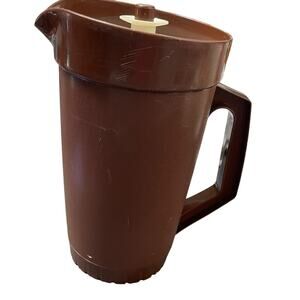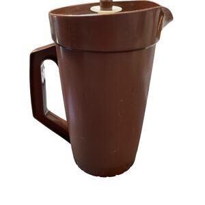 Retro Vintage Tupperware 2 Quart Pitcher Push Button Lid 3 Piece Seal Juice Tea Brown 800 802 USA 9.25"H x 5.5"D