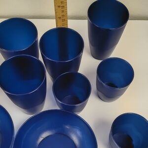 Set of blue Tupperware cups and bowls. Includes 4 525 ml cups