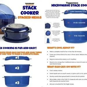 Tupperware steamer stack cooker set, like new. Perfect for healthy cooking. 7 pieces, including lids and center insert. Pretty blue, in excellent condition.