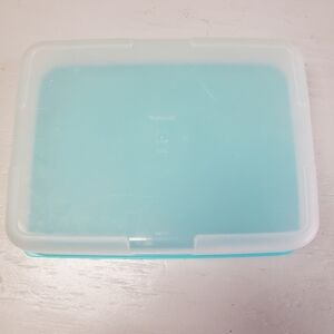 Used Tupperware container. Aqua colored lid. 3.3 liter.