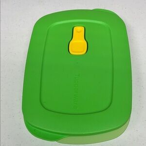 Tupperware Green Crystal Wave rectangular microwaveable 4 cup container with vented pop up .