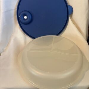 Tupperware Crystalwave Microwave Divided Dish Indigo Blue Large 11" New