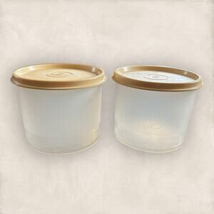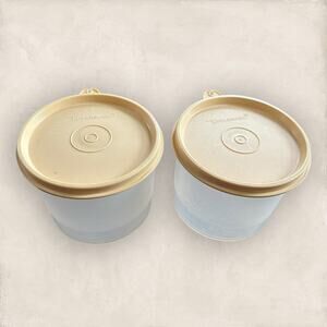 Tupperware Cup Clear Lid Tan Set of 2 Vintage Storage Container