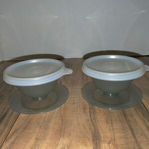 Tupperware Dessert Pudding Sundae Parfait Cups Smoky Gray With Lids Lot of 2