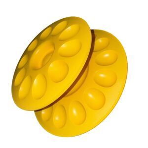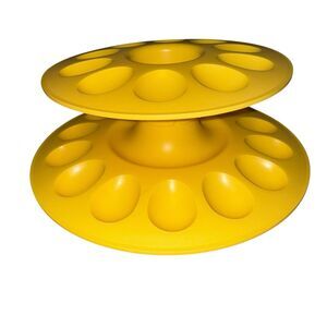 The Tupperware Deviled Egg Ceptional Server 2-piece Tray Set in Spring Green is the perfect addition to your Easter festivities or for any collection of kitchen storage and organization items. Made by Tupperware in the United States, this round tray set features two tiers and a devil character design. With vibrant green color and dimensions of 4-1/2" height and 12" length and width, this tray set is not only functional for storing deviled eggs or other snacks, but also adds a fun and whimsical touch to your kitchen decor.