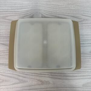 Serve and store in iconic 70s style with this vintage Tupperware deviled egg keeper (model 723-3). This 4-piece set includes two trays, a base, and lid—all in classic tan and white. Perfect for parties, picnics, or nostalgic kitchen flair!