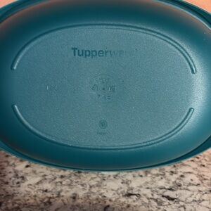 Enhance your kitchen with this stylish teal and light blue bowl set. Perfect for serving and storing your favorite dishes. Two Tupperware Essentials Rice Servers 7.5 Cups + Serving Spoons Teal New